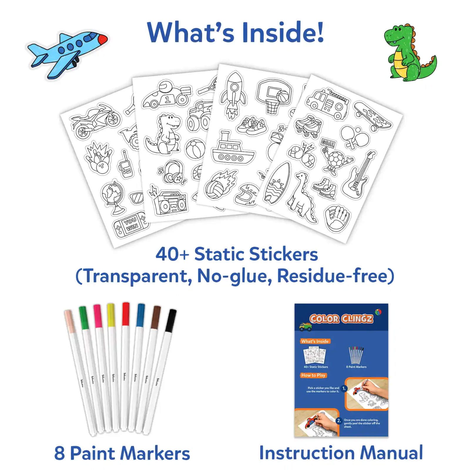Color Clingz: Cars, Sports, Dinos & More! | Mess-Free Reusable Static Stickers (Ages 3-7)