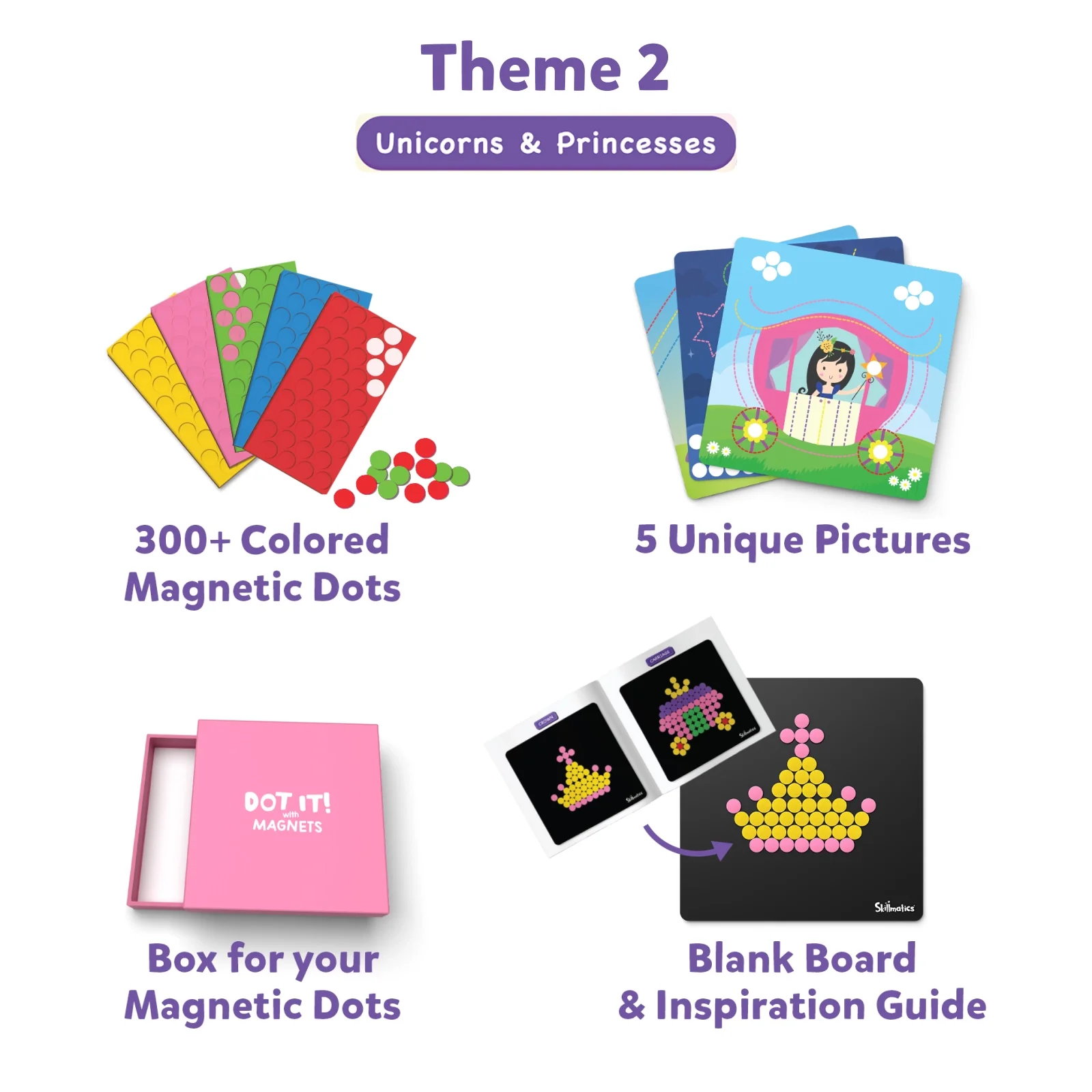 - A storage box for your Magnetic Dots in each theme